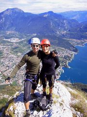 Po večerním přesunu na Gardu jsme se v Rivě pokusili najít kemp, ale to se fakt nedalo, až jsme z toho začínali bejt trudnomyslný. Samej Němčík s karavanem, lidí jak sraček, navíc drahý.. Nějak jsme to po tom sestupu z hor nedávali. Přespali jsme na apoši u mámy, která tam zrovna taky byla, a ráno se přesunuli na Lago di Ledro, kde byl o poznání větší klídek. Prázdnej kemp u jezera za mimosezónních 19 EUR za dva Čecháčky s vozem, megastanem a jako bonus od šéfa prodlužovačka na dobíjení GPS a pana foťáka. První den byl ve znamení tréninkového volna na pláži s večerní vyjížďkou kolem jezera s celkem vzpřímenou panelkou hned v úvodu (asi 400m hore). Další den byla královská etapa s nějakýma 2000m výškovýma od Ledra přes 1600m sedlo do Tenna, středověkého Canale a po zmrzlině v Rivě tunelama po Via Ponale zpět vystoupat na Ledro. Nahoru jsme školili supící Němčíky na fullech. Dolů jsme bědovali s hardtailama a úzkýma gumama v kamenný suti, stavěli na chlazení mých ráfků, který brzddový špalky žhavily do ruda a uhejbali dolů svištícím Němčíkům. Tydle sjezdy fakt nejsou na Véčka a XC biky. Další den byla v plánu ještě královštější etapa na Tremalzo a zpět přes Pregasinu, ale u Ledra Ampola už jsme ten chcanec nevydrželi a jeli radšistavět vodní díla v předsíni stanu. Další den už počasí nezklamalo a tak jsme dali ferratu dell´Amicizia nad Rivou. Něco přes 1200m nahoru, pár vzdušnejch žebříků po 40 až 70m a na nich nacvakáno na můj vkus přehršel funících Němčíků. Času nebylo na rozdávání, takže jsme to místo průvodcovských asi 6 hodin dali za 3,5 nahoru i dolů (poklusem). Pak už jen umejt v rybníku, sednout do kokpitu a probrat se v realitě v Plzni, nebo spíš až pak za další den v Bruselu. Ale o tom až příště. Fotky z Gardy. GPS soubory pro Google Earth: Dolomiti di Brenta a Lago di Garda.
