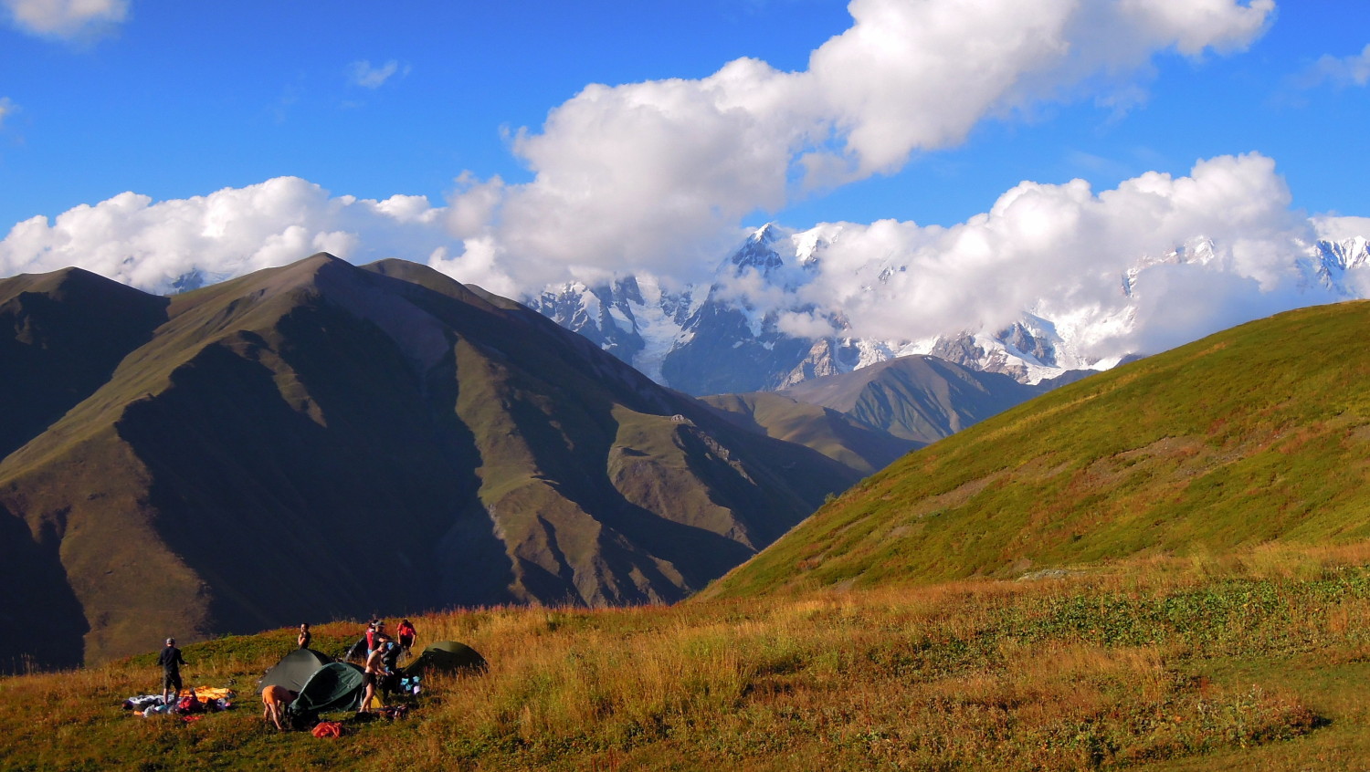 V Mestii vyrážíme na 5denní 80kilometrový trek Svanetií. Pořád přes kopce a údolí, pod ledovcema hlavního hřebene Kavkazu, ve výšce od 1800 do 3000m, skrz vesničky s typickýma obrannýma věžema u každé větší rodinné usedlosti. Tyhle stavby jsou tisíc let starý a bránily Svaneťany před invazema ať už Arabů, Peršanů, Turků, Rusů a bůhvíkoho ještě.